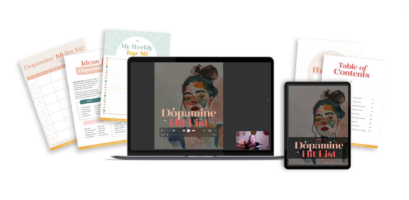 The Dopamine Hit List is a 33-page workbook + how-to video guide for women who want to feel more joy and spark in their day-to-day.